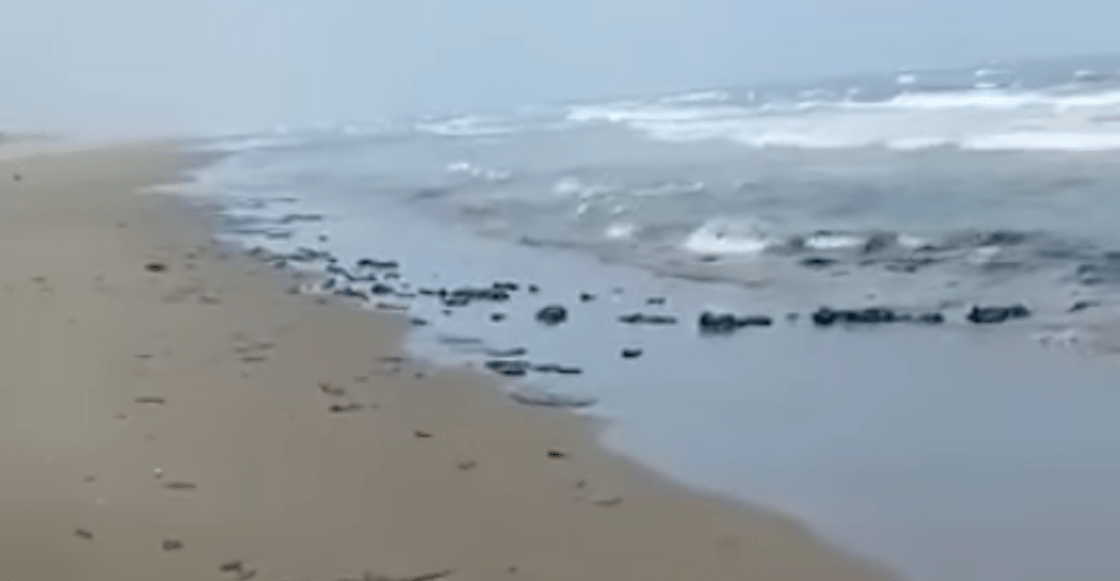 Tecolutla.- En redes sociales denuncian el derrame de una gran cantidad de chapopote en una zona de desove de tortugas en Tecolutla, Veracruz.