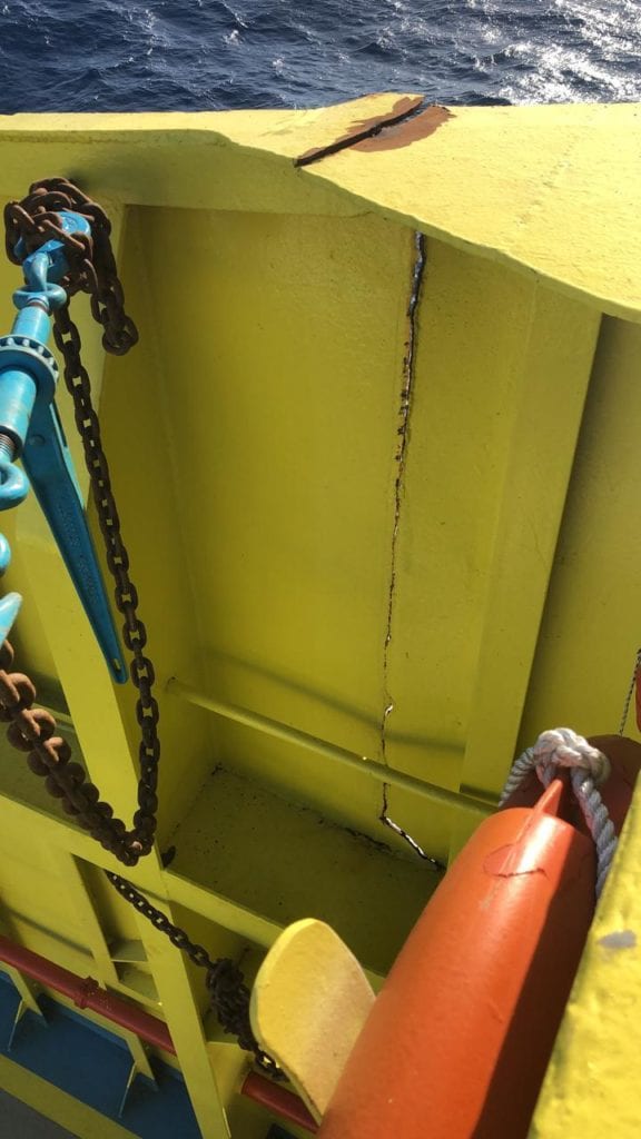 Cozumel.- Aunque la empresa Ultramar no ha emitido ninguna opinión al respecto, en las redes sociales circula un video e imágenes del ferry de carga que realiza el cruce de Calica a Cozumel y viceversa, donde se aprecia que se ha roto y se le han colocado algunos tensores de acero para que soporte el peso que transporta.