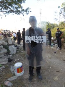 Un gran número de elementos de la Dirección de Seguridad Pública municipal, encabezados por el titular de la dependencia, Joaquín Morales Hernández, acudieron a la extensa franja de tierra en la calle 17 sur con 150, para expulsar a las personas que allí se habían instalado.