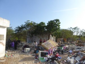 Playa del Carmen.- Un desalojo de presuntos invasores en la colonia Bellavista de la ciudad terminó con dos policías heridos y cinco personas detenidas, al enfrentar un grupo a las fuerzas del orden con palos e incluso machetes.