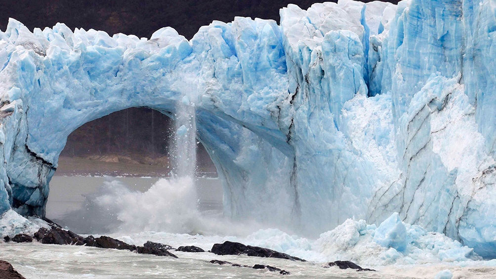 Una imponente masa de hielo azul e interminable avanza pocos centímetros cada año en Argentina y en verano el deshielo rompe el arco que forma con la tierra creando un espectáculo perseguido por los viajeros más curiosos.