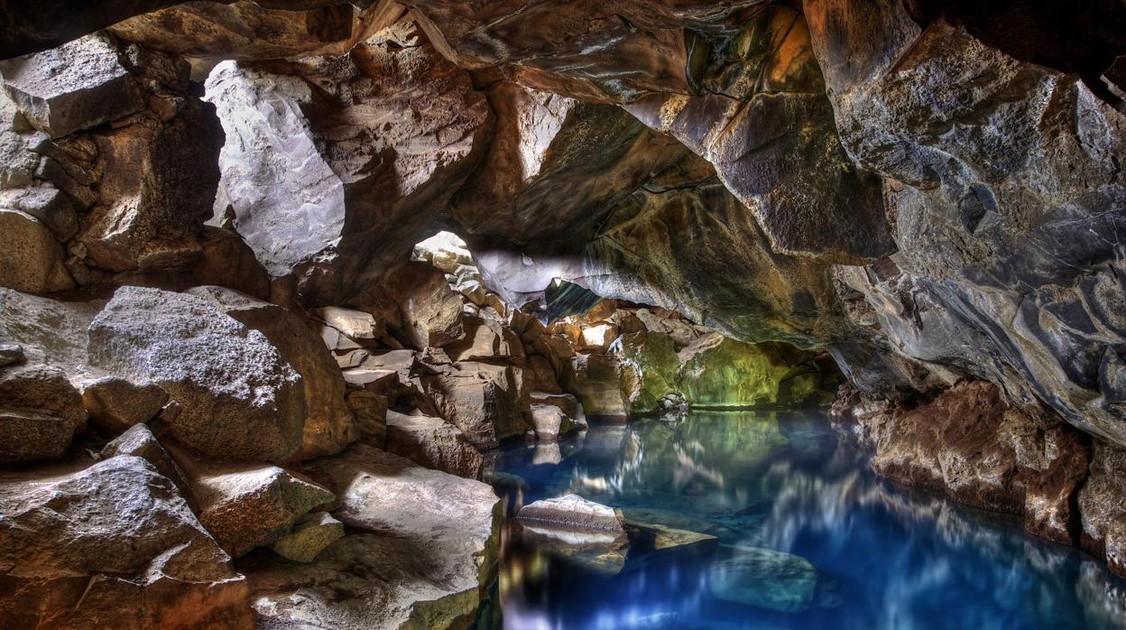 Esta pequeña cueva de lava ubicada en Islandia, a simple vista parece poca cosa, pero en su interior esconde un pequeño lago de aguas termales.