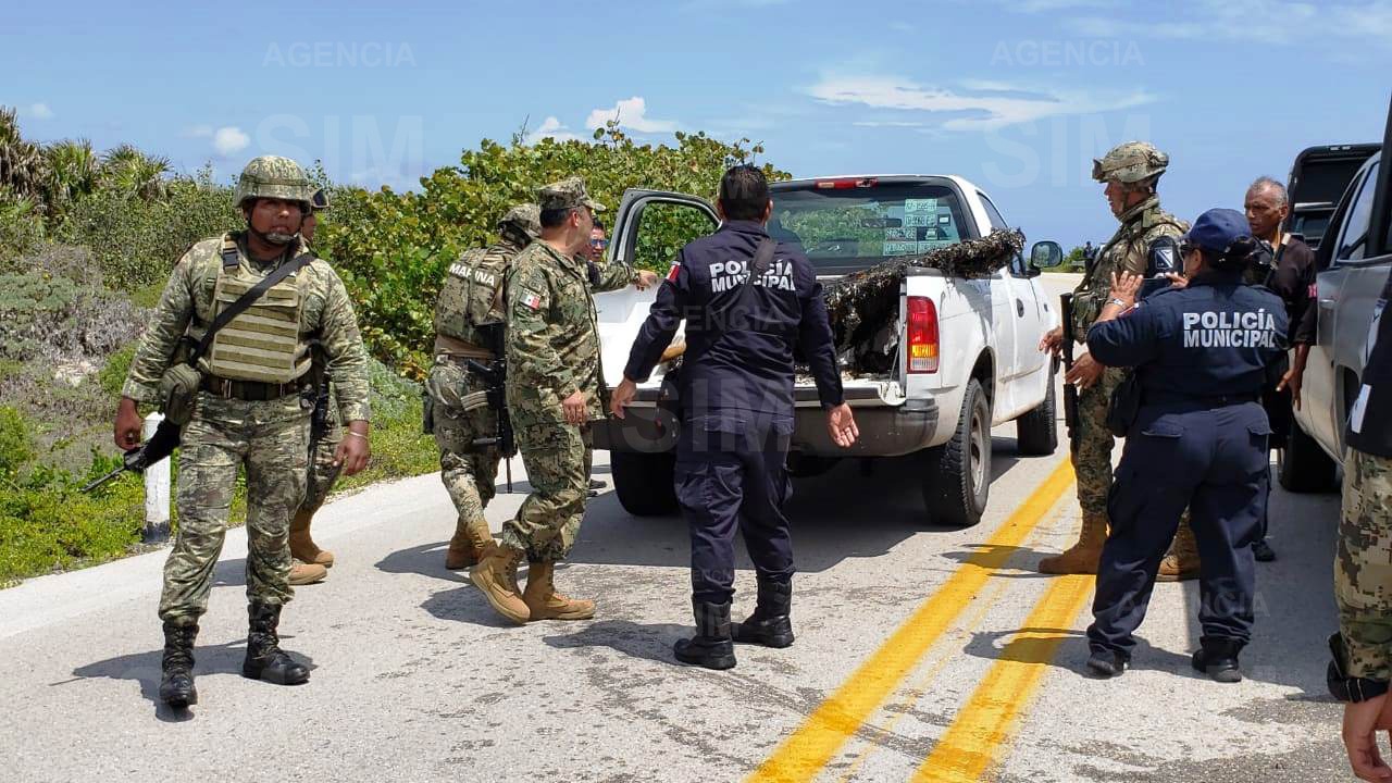 Al lugar del hallazgo acudieron elementos de la Secretaria de Marina y Guardia Nacional, así como del Ejercito y cuatro patrullas de Seguridad Publica para dar seguridad y protección a los trabajos de rescate del paquete y posteriormente, escoltar el vehículo en el que fue trasladado hasta la base de la Secretaria de Marina en la 65 avenida entre 35 y 39 a un costado de la Unidad Habitacional de la Semar, donde quedo en resguardo el paquete que según fuentes extraoficiales puede tratarse de hasta 100 kilogramos de cocaína pura con un valor estimado de 200 mil pesos el kilo en el mercado negro.