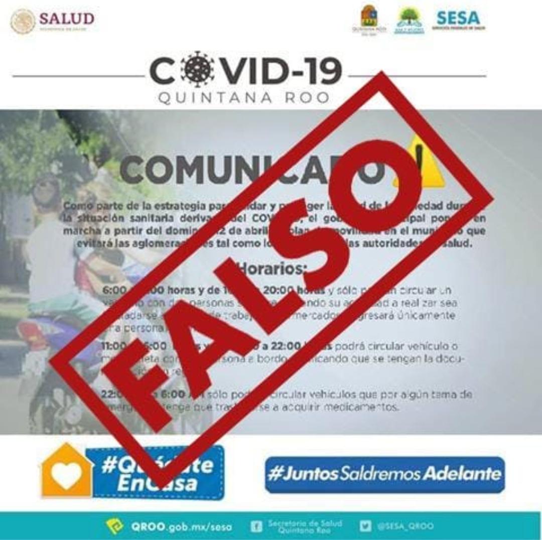 Fue mediante una publicación en redes sociales que los Servicios Estatales de Salud (Sesa) de Quintana Roo desmienten la publiación que anda circulando con información falsa.