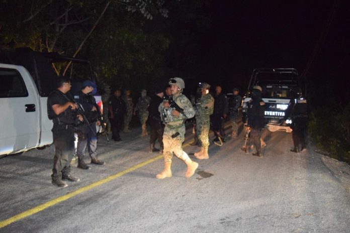 Cancún.- Debido a un reporte sobre la presunta presencia de un grupo motorizado armado, efectivos militares, ministeriales, agentes federales y policías estatales y municipales realizaron un operativo en Tres Reyes.