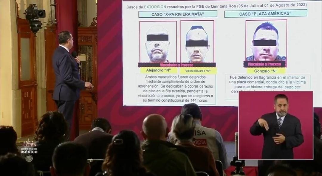 Ciudad de México.- En distintos hechos, fueron detenidos siete presuntos extorsionadores en Playa del Carmen, municipio de Solidaridad el mes pasado, varios de ellos en flagrancia, fue revelado hoy en la conferencia mañanera del presidente Andrés Manuel López Obrador.