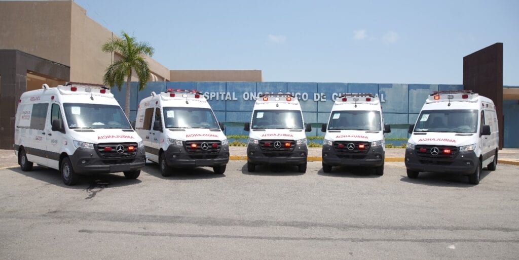 Cuentan con equipo médico, camilla rígida con sistema de sujeción, carro camilla, gancho porta suero doble, tanque de oxígeno fijo y portátil.