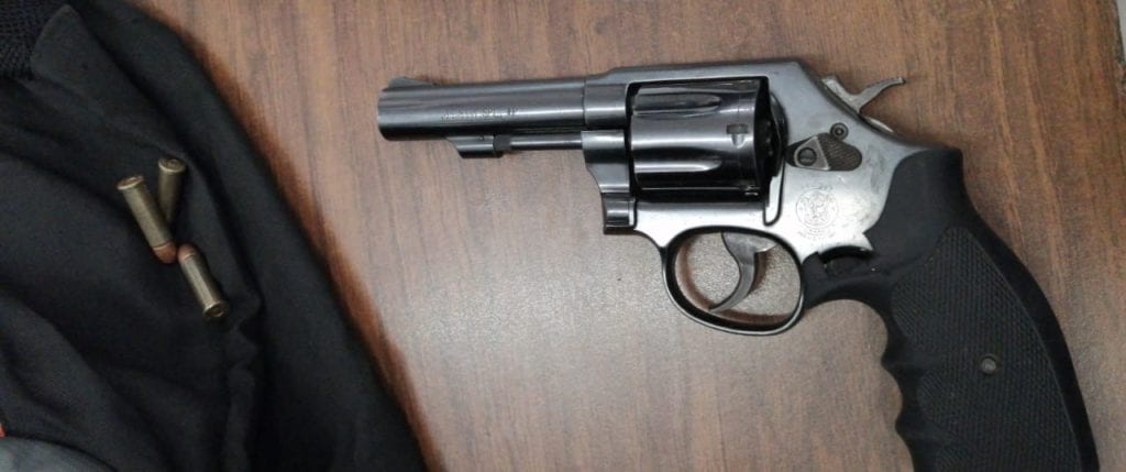 Al hacer una revisión del vehículo, los oficiales encontraron un arma de fuego, mientras que en la mochila que portaba el primer sujeto asegurado encontraron un arma corta, tipo revolver abastecida con 6 cartuchos, así como cuatro cartuchos calibre 9mm, tres cartuchos con la leyenda wcc84 y un celular.