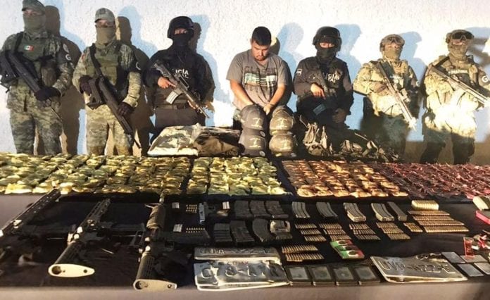 Detiene Guardia Nacional a falso ministerial con armas, droga y gorras del cártel Nueva Generación