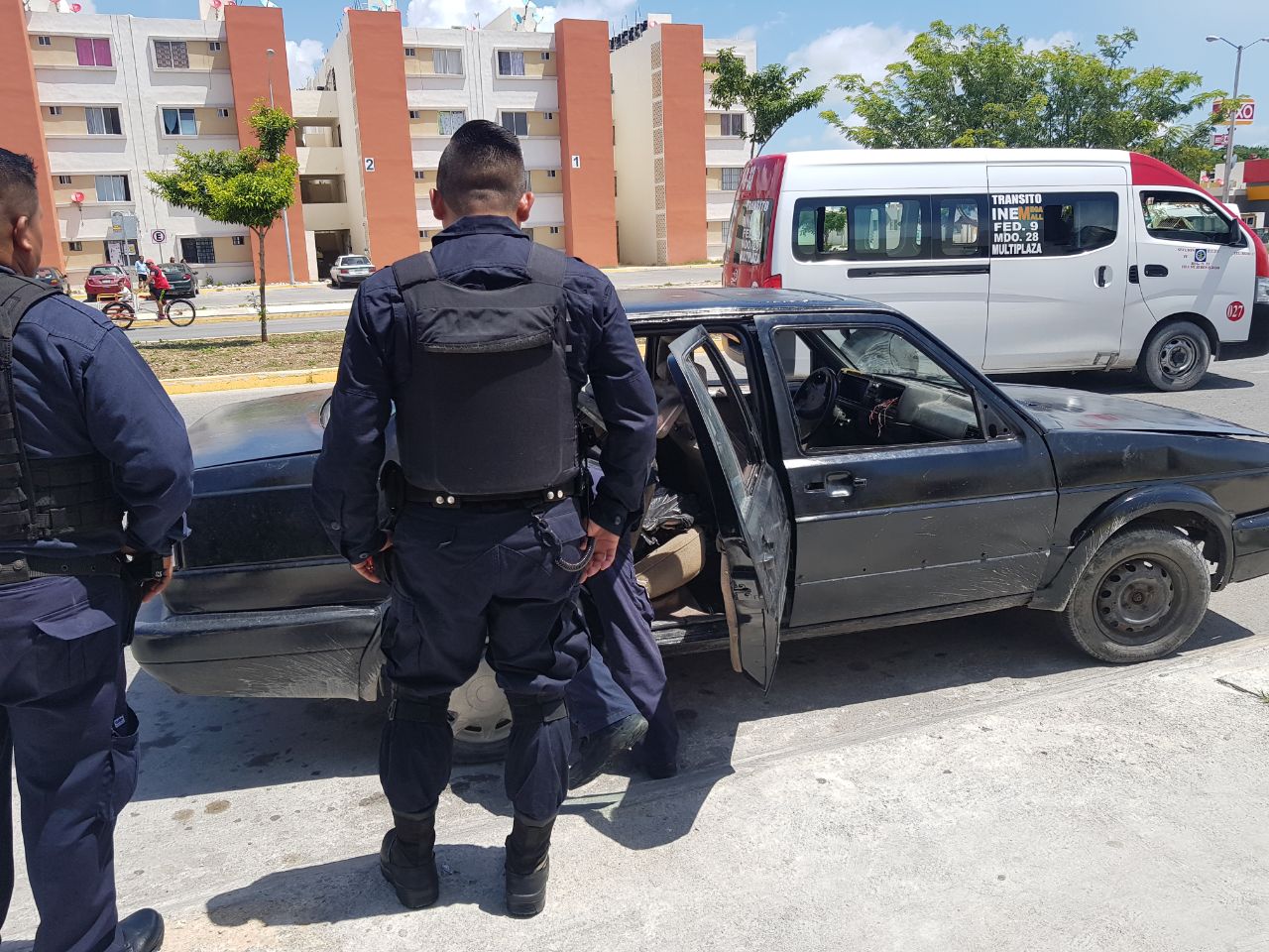 Cancún.- Dos sujetos que se trasladaban en un Jetta Volkswagen color negro fueron detenidos ya que se les encontraron dos armas.