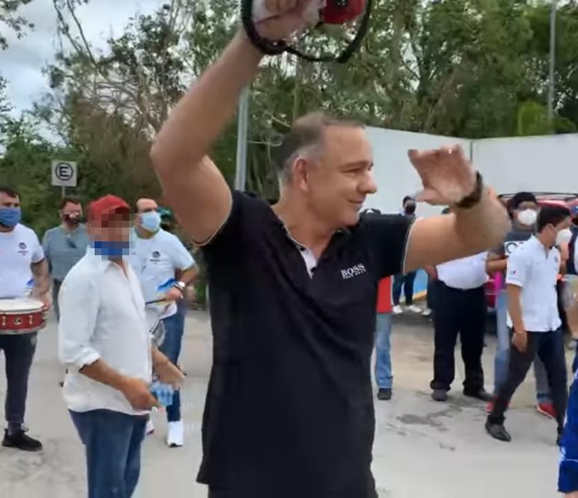 Eliseo M. C., ha estado presente en múltiples manifestaciones y actos proselitistas de Carlos Mimenza, incluida una protesta afuera de la Fiscalía General del Estado, en Playa del Carmen, el mismo día de la detención de este empresario, en donde fue grabado mientras gritaba y agredía a integrantes de la prensa.