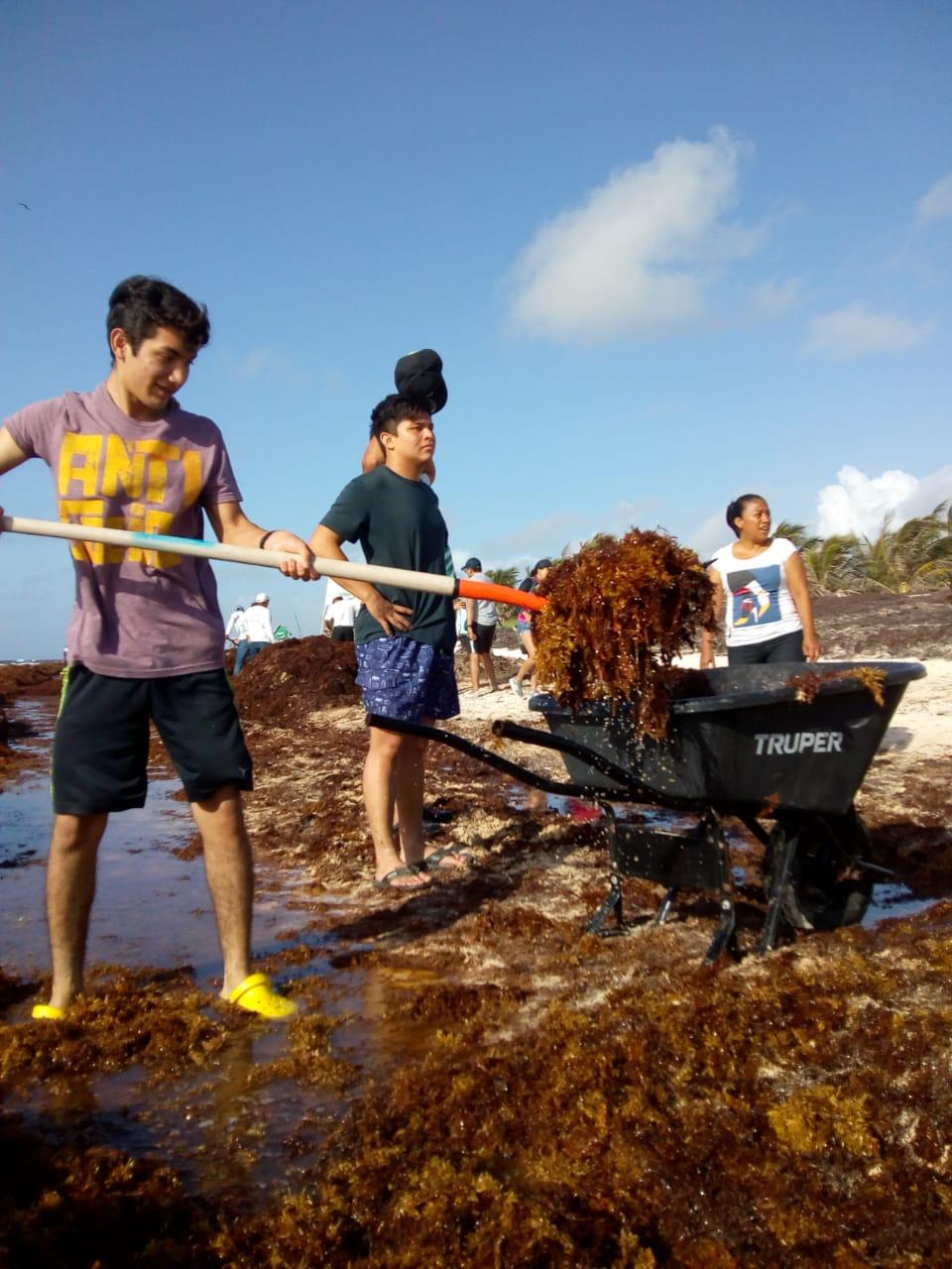 En el caso de Tulum se reunieron 60 personas del CECYTE, Bomberos, Zona Federal Marítima Terrestre (ZOFEMAT), Instituto de Capacitación para el Trabajo (ICAT) y el Ayuntamiento de Tulum, quien apoyó con el transporte, en donde se recogieron dos toneladas de sargazo, en 200 metros lineales de playa.