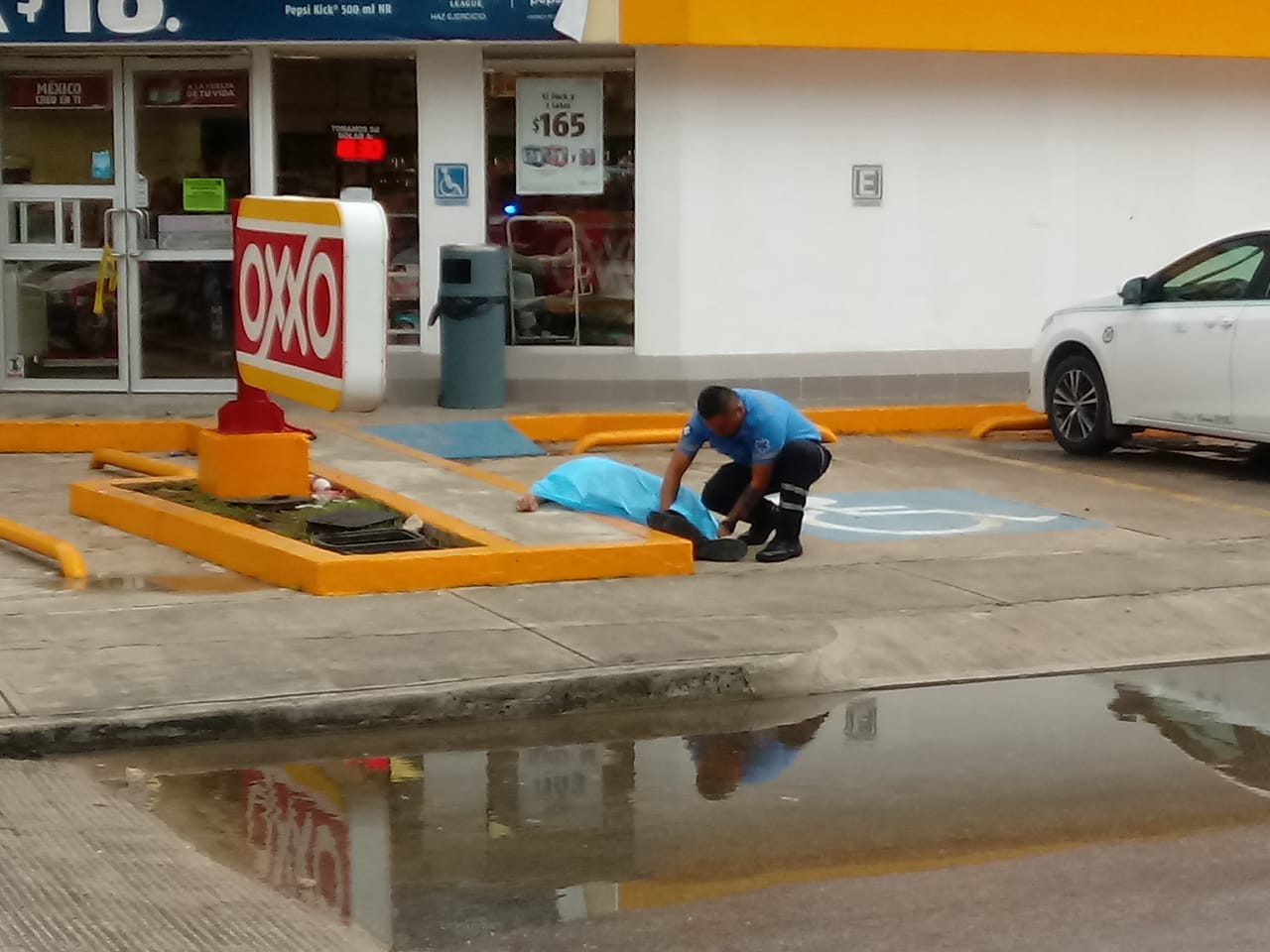 El sujeto, con el uniforme del Sindicato de Taxistas “Lázaro Cárdenas del Río” fue ultimado en el estacionamiento de un Oxxo, en la esquina del bulevar Las Palmas I con Palma Guinea.