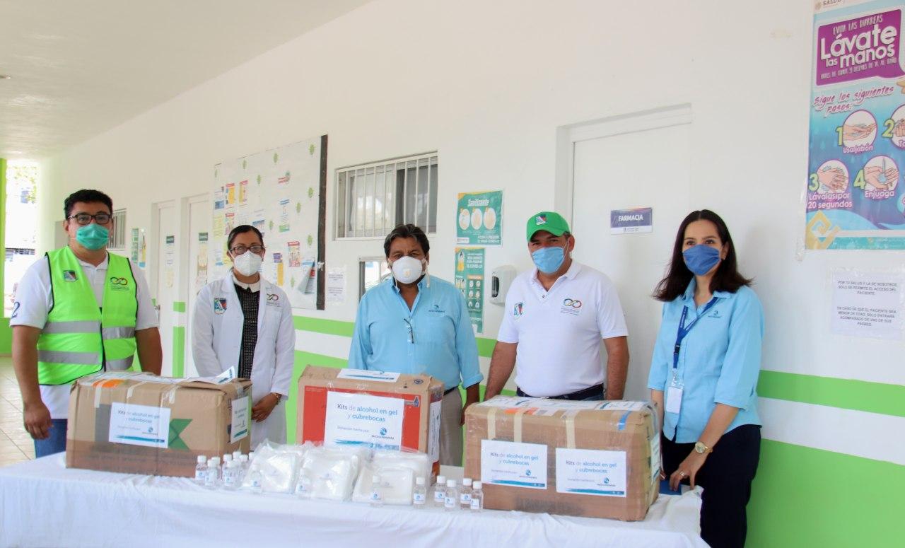 Por otro lado, la empresa concesionaria Aguakan entregó en donación 1,000 cubrebocas y 1,000 botellitas de gel en alcohol, artículos que por la contingencia se han vuelto muy demandados por la población.