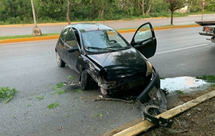 Cancún.- Un aparatoso accidente vehicular se registró la mañana de este miércoles sobre el bulevar Luis Donaldo Colosio, cuando el conductor de un auto tipo Ka, marca Ford, perdió el control y terminó impactado sobre un árbol.