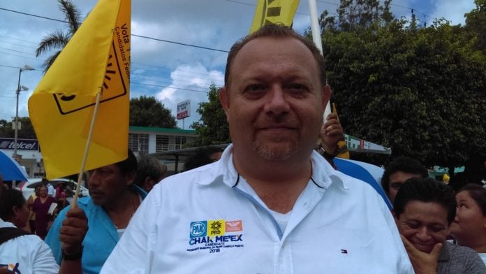 Felipe Carrillo Puerto.- José Esquivel Vargas, candidato a la presidencia municipal de Felipe Carrillo Puerto por la coalición “Por Quintana Roo al Frente” (PAN-PRD-MC), admitió que distribuye recursos económicos en campaña, en una reunión con delegados y comisariados ejidales, en la que pidió no tomar fotos ni video y en la que aclaró que es una “buena onda”, no un sueldo.