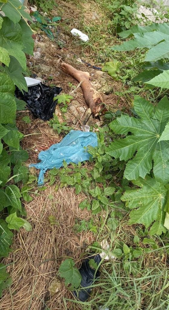 De acuerdo reportes al número de emergencia 911, perros se encontraban husmeando dentro de la basura cerca de la zona y en una bolsa grande lograron sacar una extremidad humana.