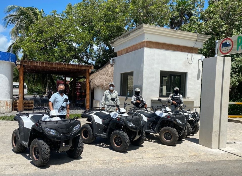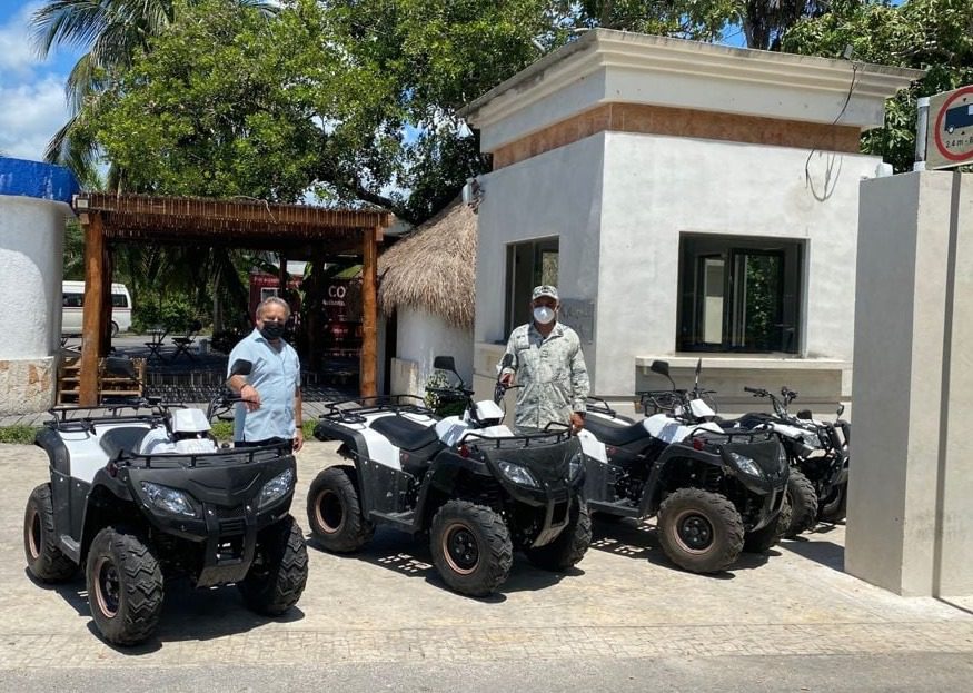 Tulum.- El Director de la Asociación de Hoteles de Tulum (AHT), Juan Noriega Granados informó que la AHT junto con hoteleros del Parque Nacional y zona hotelera hicieron la entrega a la Guardia Nacional de cuatro unidades llamadas cuatrimotos, mismas que serán utilizadas para la vigilancia e inspección en zonas del litoral Tulum.