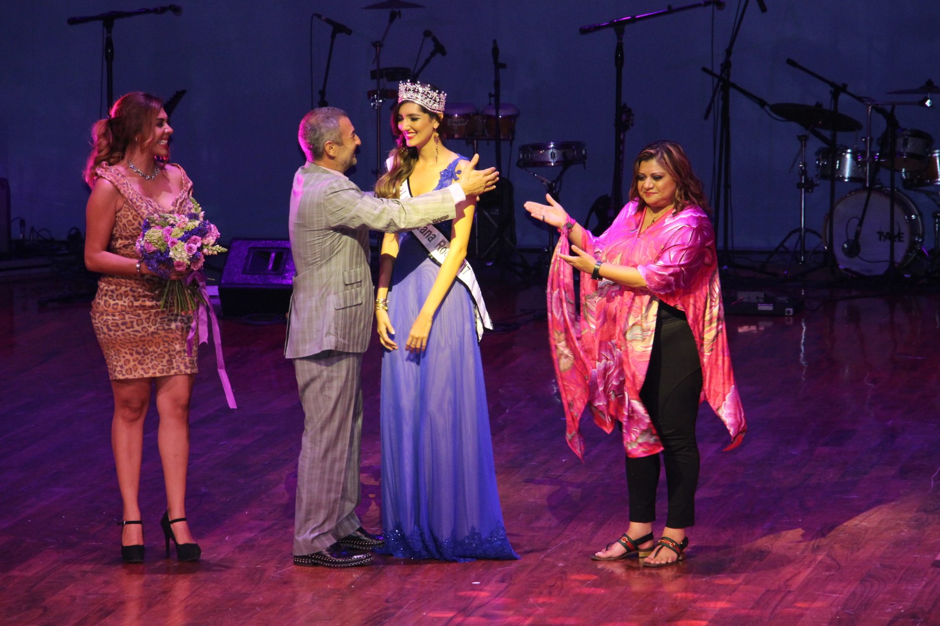 Estos símbolos de vitoria fueron entregados por: Alicia Ríos Calderón que colocó la corona y Rosa Elena Valdés, Directora del Teatro de la Ciudad. También estuvo Máximo García, Subsecretario de Promoción Turística de Quintana Roo.