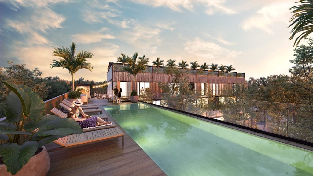 También está Sundara en Tulum, que ya está listo para habitar. “Es parte de los cinco desarrollos más lujosos de Aldea Zamá; son 32 unidades que tienen de una a tres recámaras, jardín privado y algunas unidades tienen su propio jardín con alberca y otras con pent house y solarium privado. Como amenidades tiene alberca, gym, bar, roop tof, seguridad 24 horas”.