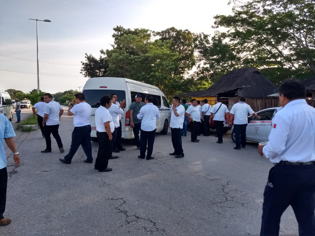 Felipe Carrillo Puerto.- Taxistas de Felipe Carrillo Puerto y de Tulum se han movilizado en sus respectivos municipios para impedirle el paso a las vanes de cada uno, derivado de un conflicto surgido ayer, por querer los “Tiburones del Caribe” hacer una terminal en otro punto.
