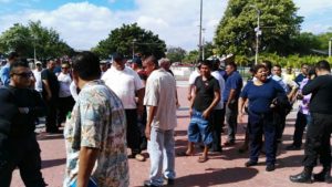Los más de 100 agentes, uniformados y de civil, se arremolinaron frente a su centro de trabajo, con la amenaza de irse a paro general de no recibir respuesta a su exigencia, hecha a inicios de semana y depuesta por la promesa de que hoy les darían solución. Los mandos policiacos, que inicialmente intentaron evitar la presencia de la prensa, les solicitaron más tiempo, a lo que se negaron.