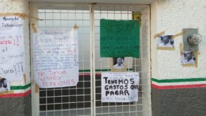 Las oficinas de esta delegación fueron prácticamente tapizadas con cartulinas con exigencias y en contra del subdelegado, al que acusan de “jinetear” sus pagos.