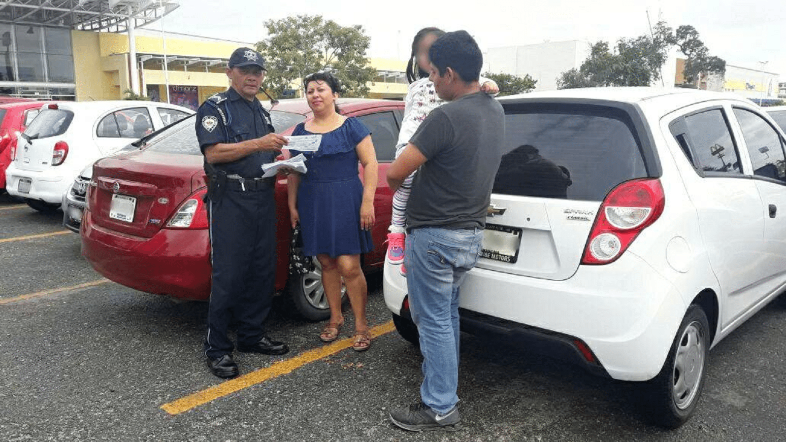 Chetumal.- Con el objetivo de evitar los robos y cristalazos en autos, agentes de tránsito realizan jornadas informativas con entrega de volantes en centros comerciales de Chetumal.