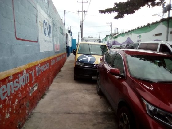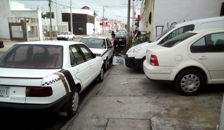 En un recorrido realizado por este medio, desde la avenida Tulum con la Talleres se observa a las unidades descompuestas o en reparación, que estorban el paso del peatón, la gente tiene que descender de las escasas banquetas para librar los obstáculos puestos por los mecánicos.