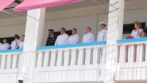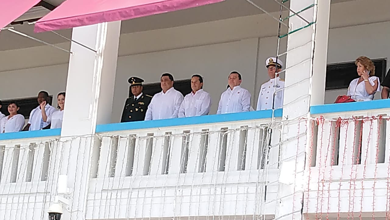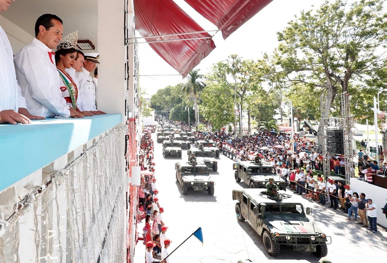 Atestiguó el desfile el gobernador, Carlos Joaquín González; el presidente de la Gran Comisión del Congreso del Estado, Eduardo Martínez Arcila; y el presidente del Tribunal Superior de Justicia, José León Ruiz.