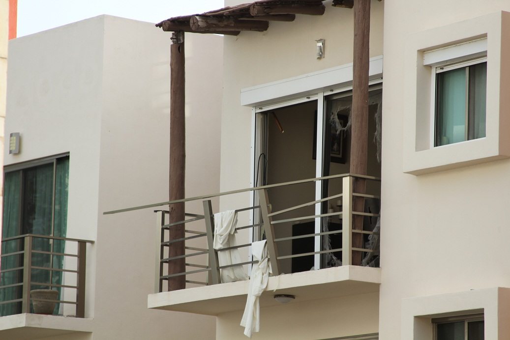 Las corporaciones de Bomberos y Protección Civil se dieron a la tarea de apoyar con el acordonamiento del departamento que tuvo daños en puertas y ventanas de cristal que salieron volando, quedando esparcidos en las áreas de uso común y estacionamiento.