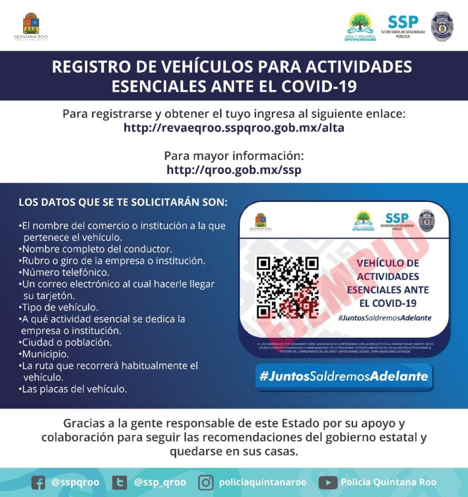 Cancún.- La Secretaría de Seguridad Pública de Quintana Roo anunció a través de sus redes sociales que los tarjetones para vehículos de actividades esenciales podrán prolongar su uso hasta el 1 de junio.