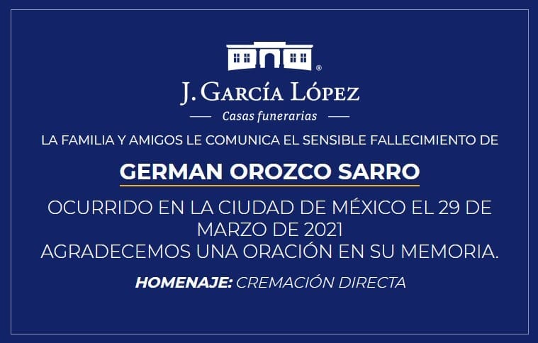 Este lunes 29 de marzo, de manera repentina, el empresario quintanarroense Germán Orozco Sarro falleció en la Ciudad de México, donde era atendido de una enfermedad, cuya crisis desencadenó su muerte.