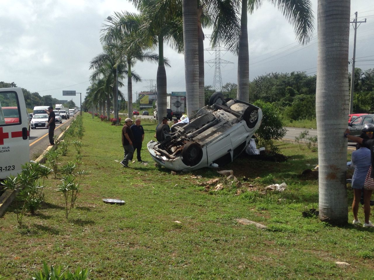 Playa del Carmen.- Una mujer falleció, al volcar su automóvil en el tramo carretero de Puerto Morelos a Playa del Carmen, a la altura del kilómetro 303 de la carretera Reforma Agraria-Puerto Juárez.