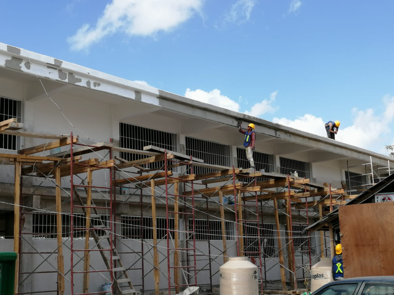 Son 11 las escuelas que se edifican en la entidad, las cuales van a un 85%, comentó Rodríguez Herrera, en el marco de la visita de inspección a uno de estos planteles. Nueve de ellas están en Benito Juárez y dos en Solidaridad.