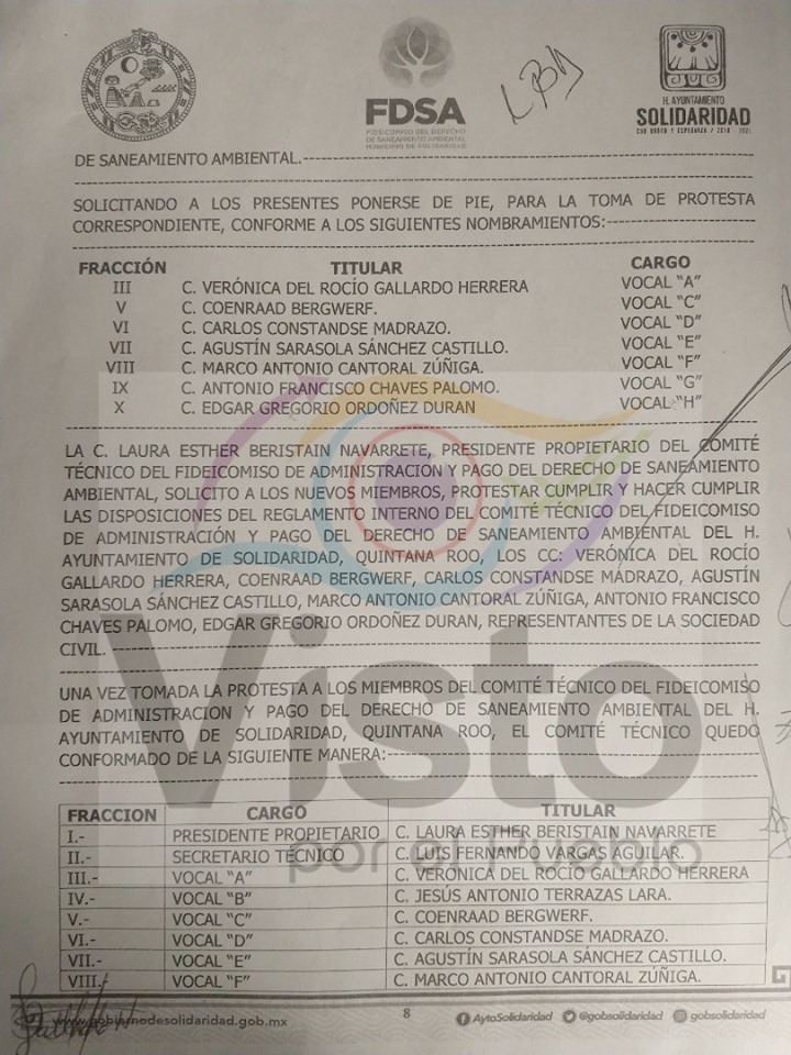 Así se desprende del acta de la primera sesión del Comité Técnico del FDSA de la actual administración, en el que se detallan los montos invertidos en distintos rubros, además de nombrar a los nuevos integrantes de este organismo, que maneja esta bolsa, proveniente del Derecho de Saneamiento, en el que cada huésped paga 20 pesos por habitación, por noche de hotel en el municipio.