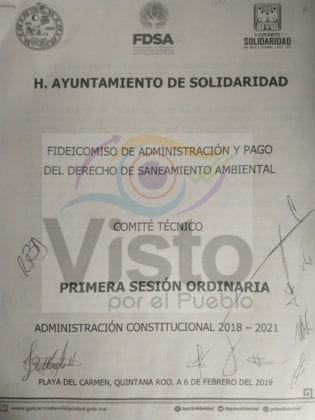 Playa del Carmen.- El Fideicomiso del Derecho de Saneamiento Ambiental del Municipio de Solidaridad (FDSA) recaudó hasta inicios de este año casi 200 millones de pesos, de los que 131 millones ya habían sido erogados y otros 67 millones de pesos estaban pendientes por ejercer.