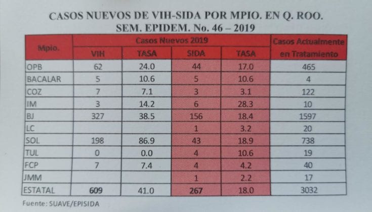 En Quintana Roo, se cuentan 3 mil 150 personas con VIH, que están en tratamiento en los distintos Ambulatorios para la Prevención y Atención en SIDA e Infecciones de Transmisión Sexual (Capasits) y en los Servicios de Atención Integral Hospitalaria (SAIH).