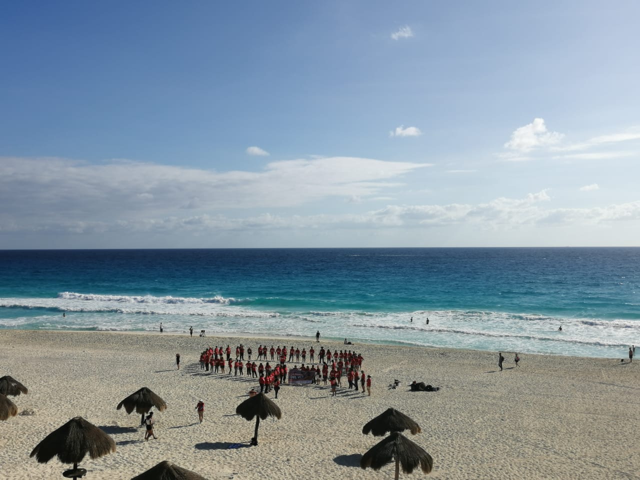 Cancún. Asociaciones civiles y la Jurisdicción Sanitaria 2 se organizaron hoy para realizar un “lazo rojo” humano, símbolo de la lucha contra el VIH/Sida, en la playa Delfines, culminando una campaña de pruebas rápidas, en las que se atendió a miles de ciudadanos en la última semana.