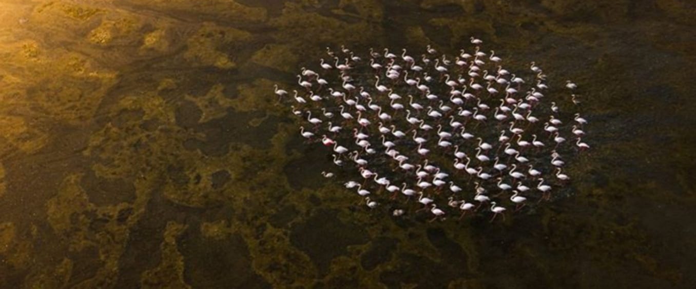 El fotógrafo Talal Al Rabah compitió con su foto aérea de un grupo de flamencos reunidos cerca de la playa, la cual lleva el nombre de “United (Unidos), en el concurso de Wildlife Photo 2019.