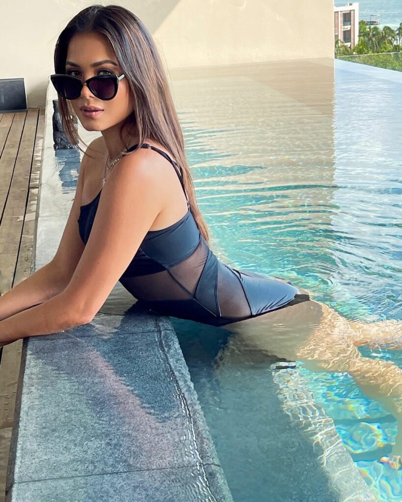 Cancún.- La mexicana ganadora del certamen de belleza Miss Universo, Andrea Meza, no quiso pasar desapercibida en su visita a Cancún, por lo que presumió algunas fotos donde muestra su espectacular figura en trajes de baño y de noche.