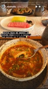 La imagen que más llamó la atención de sus seguidores fue una donde se puede ver cómo está a punto de comer un mondongo.