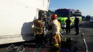 Dos personas fueron liberadas de entre los fierros y trasladadas en ambulancias para su atención, en tanto que una tercera ambulancia se quedó valorando a otros lesionados.