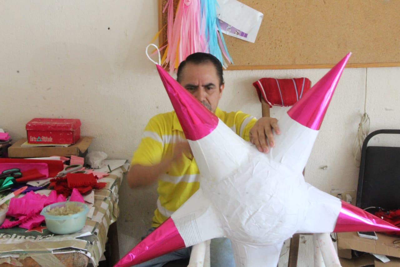 “Estamos armando estrellas para la temporada navideña, hacemos todo tipo de piñatas pero en estas fechas es la forma que más piden, alrededor de mil estrellas que empezamos desde octubre, trabajamos sobre pedido, es un trabajo arduo, más de paciencia como una semana de anticipación, para estas fechas se incrementan las ventas más de un cien por ciento y los acabados para las estrellas son menos complicados a diferencia de otras figuras”, dijo la responsable del taller, María Elena Villagrán Nieto.