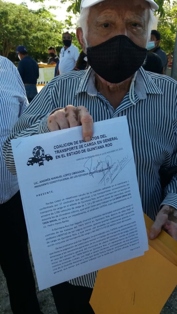 El agraviado explicó que la CATEM apareció “de la nada” en el estado, asegurando tener ya los contratos con el Tren Maya, por lo que cualquier volquete que quiera sumarse a la obra tiene que arreglarse con ellos.