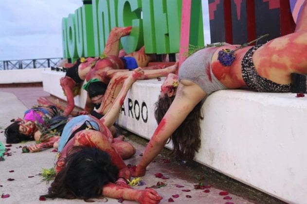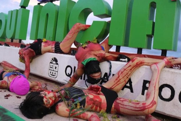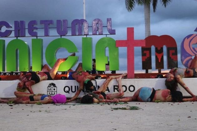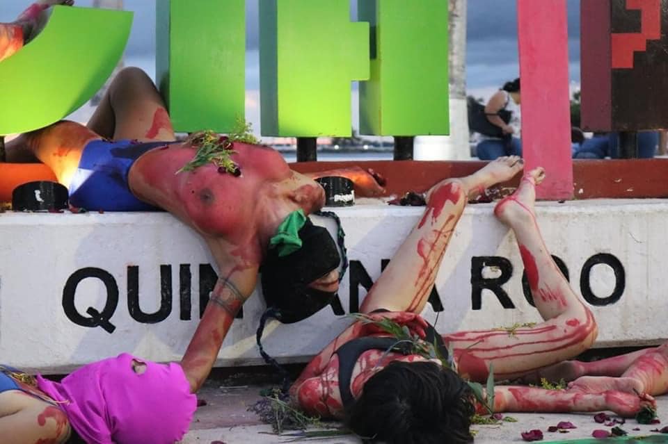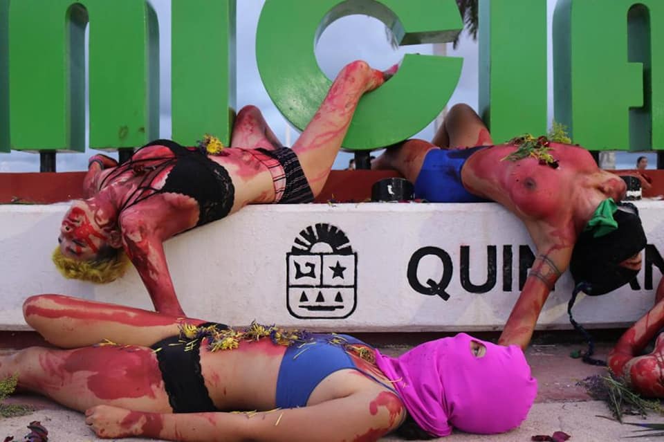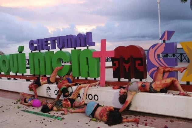 Las protesta tuvo lugar en el Sendero por la Igualdad de Género y en las letras de Chetumal en bulevar Bahía, feministas expresaron su repudio por los asesinatos contra las mujeres a través de un performance.