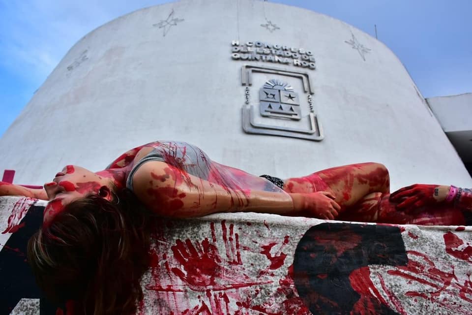 “Aquí inicia México, donde 11 mujeres son asesinadas al día. En #QuintanaRooFeminicida a ninguno de los 3 poderes les importa nuestras vidas”, señaló el colectivo Marea Verde Quintana Roo.