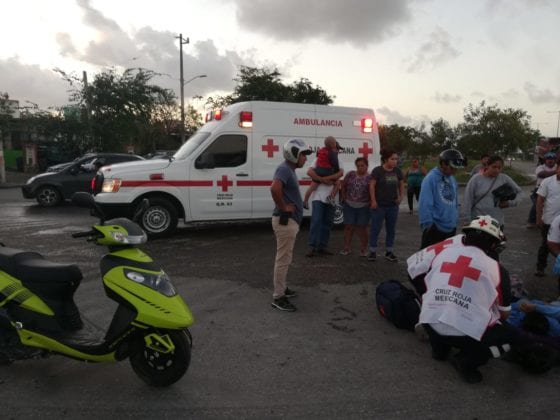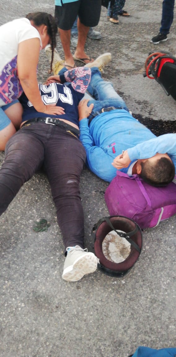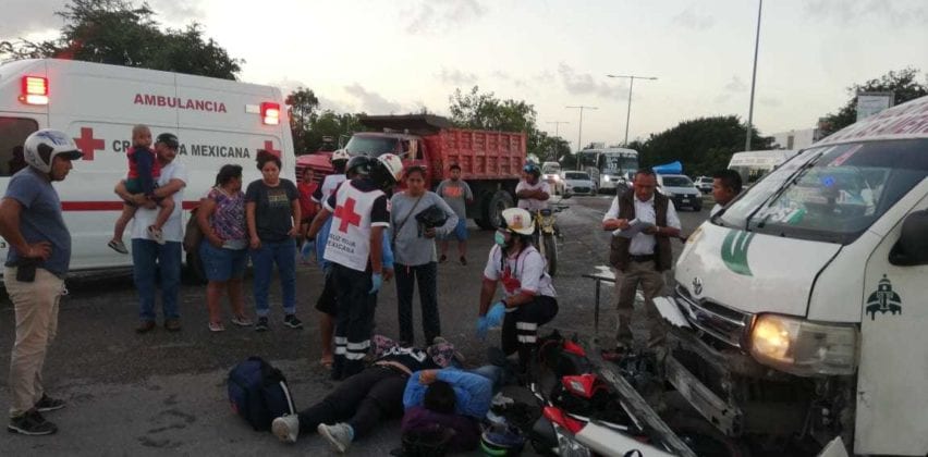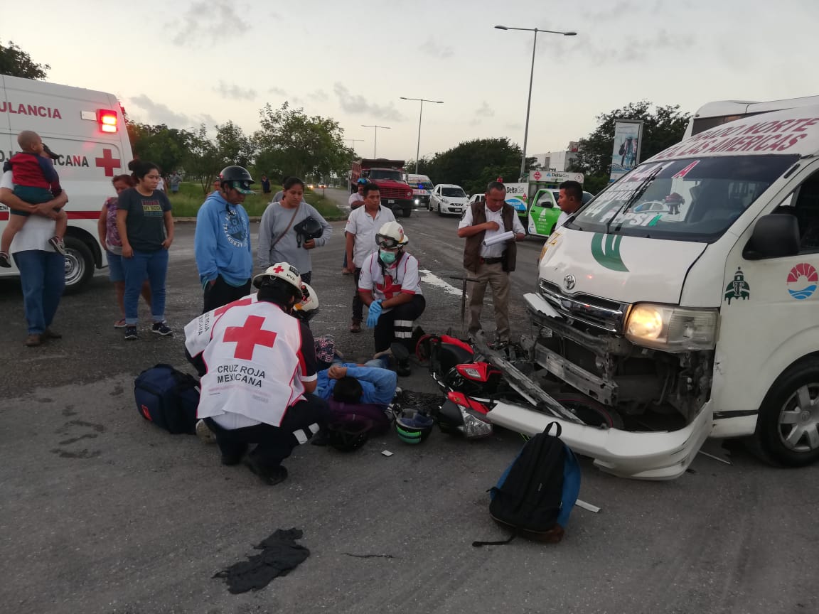 Cancún.- Un accidente con dos lesionados se registró la mañana de hoy miércoles cuando una combi del transporte público de las TTE (Transporte Terrestre Estatal) con número económico 398 golpeó a los pasajeros de una motocicleta.