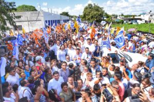 Chetumal.- Panistas y sus aliados del PRD y Movimiento Ciudadano arroparon en unidad a sus precandidatos afuera de la sede estatal de Acción Nacional, una vez concluidos los registros de Cristina Torres Gómez, para Solidaridad; Fernando Zelaya para Othón P. Blanco y Luis Torres Llanes para la diputación del Distrito 2.