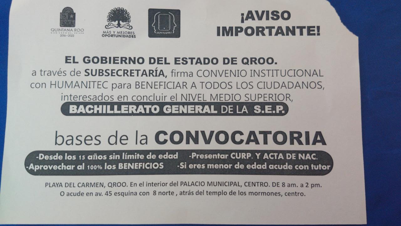 Esto es posible gracias a un convenio firmado entre la Susecretaría de Educación Media Superior de Quintana Roo y Humanitec. Para poder aprovechar esta oportunidad hay que cumplir los siguientes requisitos:
